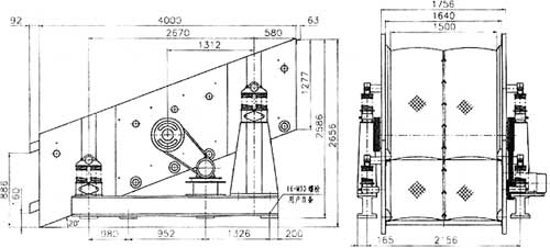 圖1 SZZ800×1600及SZZ2800×1600自定中心振動篩安裝尺寸